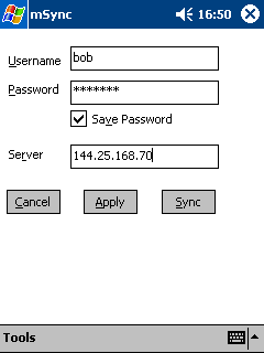 Figure 22-12 displays the msync dialog on the Pocket PC.