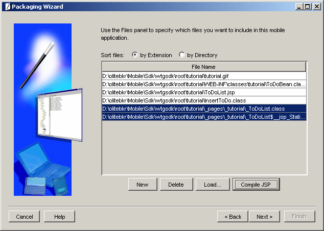 In the development environment, every application and its associated servlets must be registered with the Mobile Client Web Server. You do not need to register the To Do List JSP or JavaBean.
