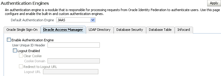 Logout Enabled – Enable/disable logout for the Oracle Access Manager application.