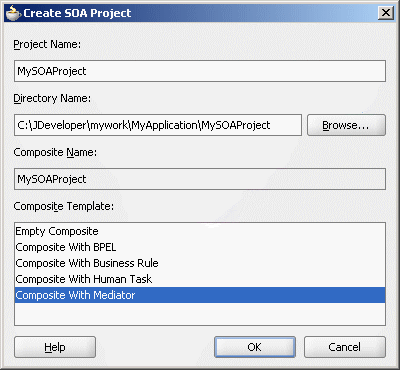 Figure 18-5 Composite with Mediator Selection in Create SOA Project Dialog