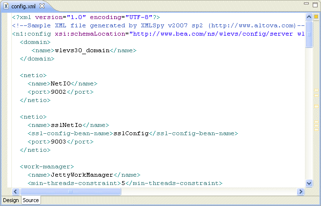 The Oracle CEP server domain configuration file config.xml opens as shown in Figure 5-30.