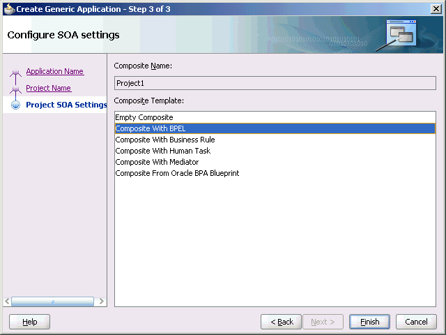 Select Composite With BPEL from the Composite Template list, and then click Finish.