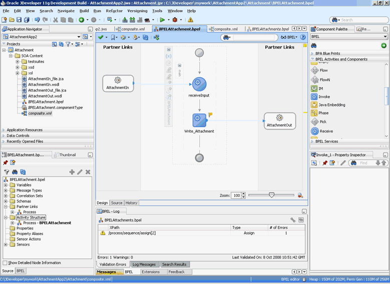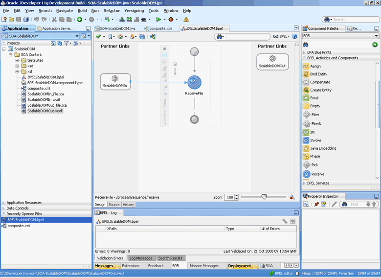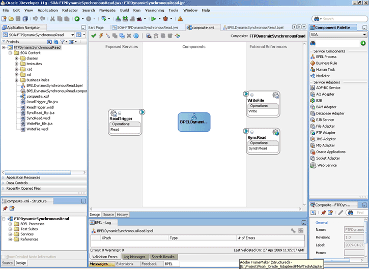 A composite is an assembly of services, service components (BPEL PM and Mediator), wires, and references designed and deployed together in a single application. The composite processes the information described in the messages. The details of the composite are stored in the composite.xml file. For more information about integration of the Oracle File and FTP Adapters with SOA composite, see Oracle SOA Composite Integration with Adapters.