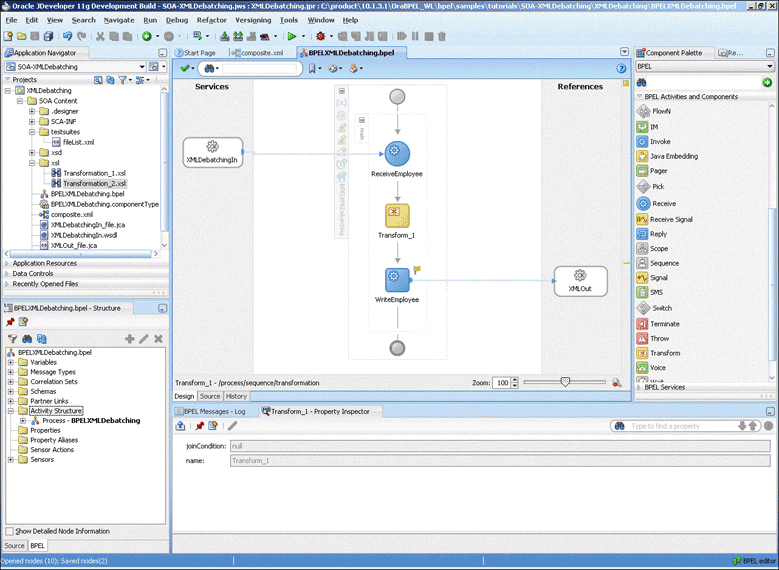 This use case is similar to the FlatStructure sample in the BPEL samples directory. The difference is that the three steps occur in a single File I/O interaction.