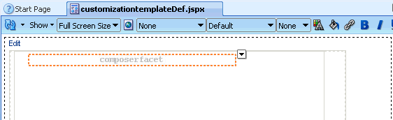 ThePanel Stretch Layout component stretches the child in the center facet to fill all the available space in the browser. This is true even if you resize the browser. Therefore, by placing your components within this child component, you can ensure that the customizable portion of your page occupies the complete browser area.Add a Page Customizable to the center facet by following the steps in Section 7.1.2, "How to Enable Runtime Customization Using a Page Customizable."