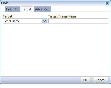 Use the Target tab to refine the target link destination. From the Target pick list, select from: