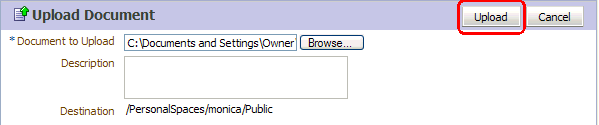 On the Documents page, click the Public folder to select it, then click the Upload document icon as shown: