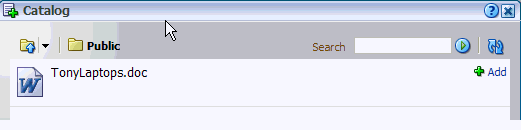 Because you're the one creating this page, the Public folder automatically contains the same documents as you saw on the Documents page in your personal space. In this context, however, your documents are displayed as content "building blocks" with which you can build your page, as opposed to content that you peruse in order to complete a given task.