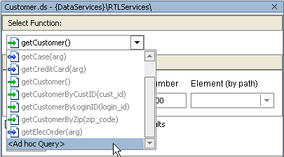Figure 7-11 shows a function where the results for RTLServices/Address/getAddress() are limited to three Address elements. Without such a limitation, all customer records would be returned.