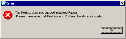 If these facets are not installed with the Web Service project, then an error message is displayed as shown in Figure 7-17: