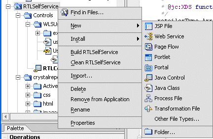To create a Data Service control, start the Java Control Wizard by right-clicking on the new folder in your project and choosing New