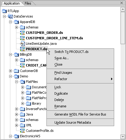 For example, in the RTLApp, right-clicking on a data service shows a number of options including Find Usages (Figure 2-22).