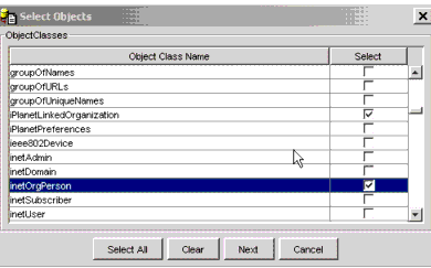 groupOfUniqeNames and inetOrgPerson object classes and click Next. The Save windows is displayed (see Figure 7-7).Figure 7-7 RadiantOne Select Object Save Window