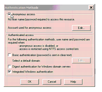 Configure the NamePasswordForm.acc file for the IIS Web Server as follows: