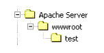 Apache Server/wwwroot/test directory as shown in Figure 5-13 and copy the following files to the test directory:NamePasswordForm.htmlfoo.htmlatnfailure.htmlatzfailure.html| Note: | The NamePasswordForm.html file is provided in the BEA_HOME\ales25-ssm\apache-ssm\instance\<instancename>\templates directory. The foo.html, atnfailure.html and atzfailure.html files are not provided in the product installation kit. You should use your own versions of these files. |