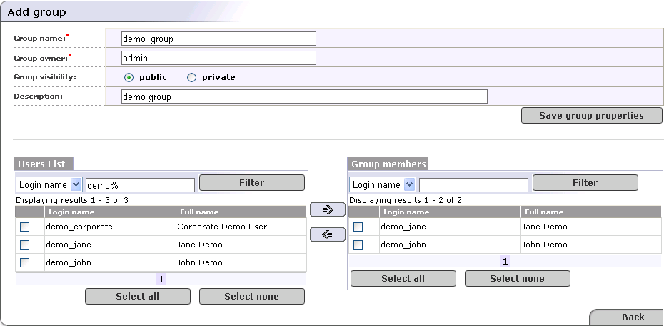 Click the Save group properties button. This returns the Users list and Group members sections shown in Figure 5.