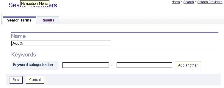 Enter your search criteria. You can enter wild card characters. Then click Find.