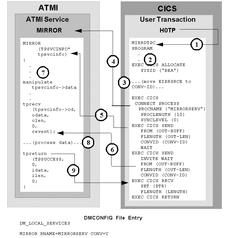 CICS/ESA DTP to ATMI Conversational Server, Client Retains Control