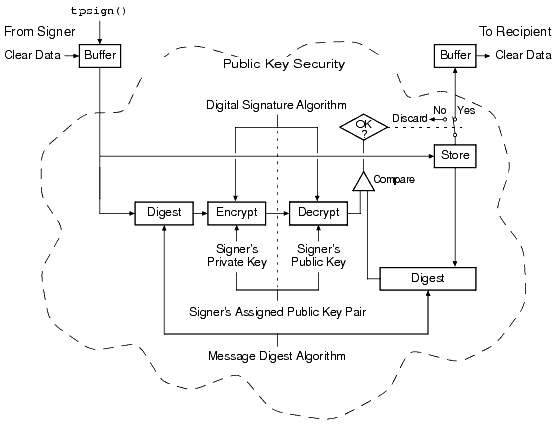 asymmetric key) encryption to establish end-to-end digital signing and data privacy between ATMI application clients and servers. Complies with the PKCS-7 standard.
