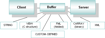 All communication in the BEA Tuxedo system is transmitted through typed buffers. The BEA Tuxedo system offers application developers the choice of many different buffer types to facilitate this communication. All buffers passed through the BEA Tuxedo system have special headers, and must be allocated and freed through the BEA Tuxedo ATMI (tpalloc(), tprealloc(), and tpfree()).