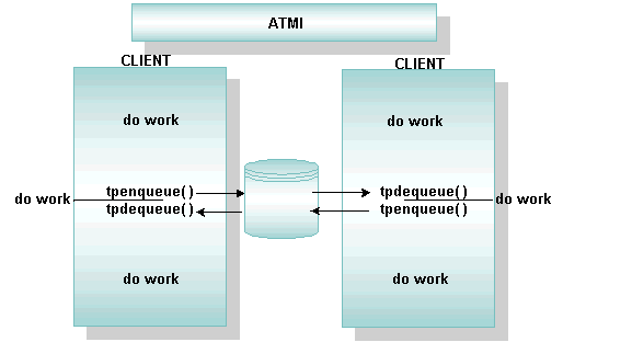 This system of queuing is transparent to services. In other words, the same application code is used for a service, regardless of whether the service is invoked through queuing or direct service invocation using tp(a)call.