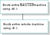 Note: The boot sequence is much faster for large applications because the number of system messages is far smaller. This method generally reduces boot time by 50%. In a configuration running on a slow network, boot time can be improved by booting machines with higher speed connections to the MASTER machine first.