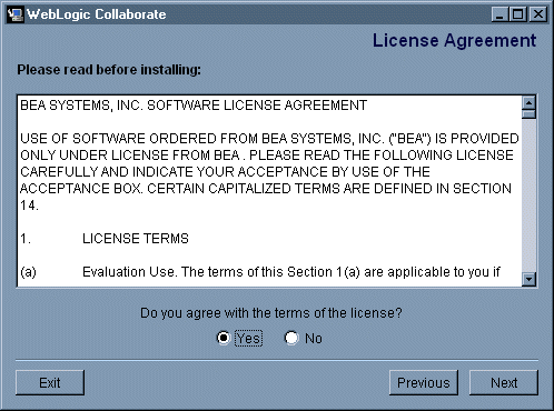 To install the BEA WebLogic Collaborate software, complete the following steps:
