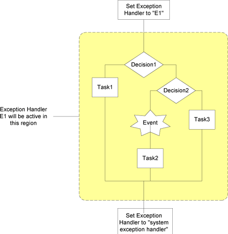 Future versions of WebLogic Integration will use structured exception handling. To provide for an easier transition to future WebLogic Integration product releases, you should consider the following suggestions when setting exception handlers: