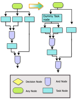 The Parallel Execution pattern represents a case in which all the parallel paths coming out of a workflow node will execute in parallel and rendezvous at an And node where the parallelism ends. Follow these guidelines to implement this workflow pattern properly.