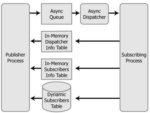 An in-memory dispatcher table provides the detailed information needed by the process control to send the message at run time. This dispatcher table is automatically updated when an application is deployed or redeployed.