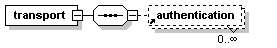 This element specifies the authentication properties for a remote client that connects to the parent transport endpoint.