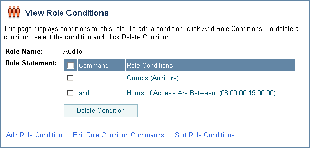 - On the View Role Conditions page, click the check box to the left of the condition to select it.