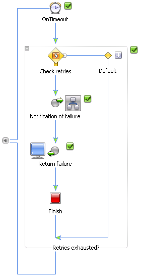 The OnTimeout path handle failure management, such as in the event of a network failure. To view the failure path: