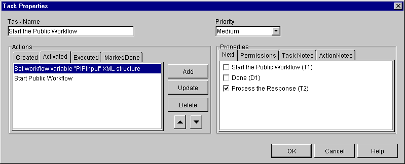 Thus the Start Public Workflow action triggers the PIP3A2_Customer_RN2 workflow, in this sample.