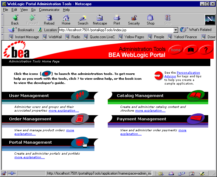 This section shows how to run the Domain Configuration Wizard to create a new complete set of enterprise applications which include all the administration, commerce, personalization and portal functionality offered by the WebLogic Portal platform.