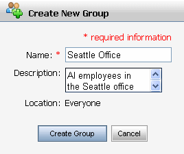 When you create a group, a group profile is automatically created for the group. A group profile contains information about the group that is stored in editable fields in the Administration Console. You can edit properties for groups, but users belonging to those groups do not automatically inherit the group properties you specify. Group properties might include group manager, location, department, and so on.