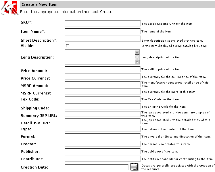 Figure 4-20 Bottom Portion of Create New Item Screen