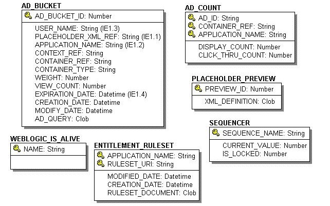 WebLogic Portal's personalization features use the following tables. In this list, the tables are sorted by functionality: Ads and Placeholders tables