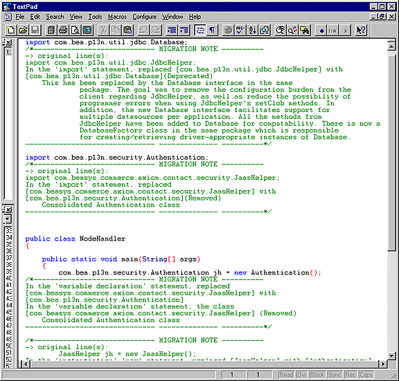 set MIG_CLASSPATH=%BEA_HOME%\lib\tools.jar;%MIGRATION_LIB%\migration.jar;%MIGRATION_LIB%\apache\xerces-1_4_3\xerces.jar;%MIGRATION_LIB%\apache\xalan-j_2_0_1\xalan.jar;%MIGRATION_LIB%\p13n_system.jar;%WEBLOGIC_HOME%\lib\weblogic.jar;%BEA_HOME%
