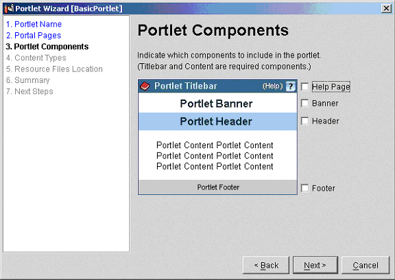 Figure 1-23 Portlet Components page of the Portlet Wizard