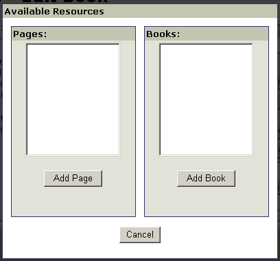 - Click Add Portlet, Add Book, or Add New Book as desired.