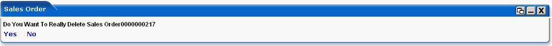 To delete the selected Sales Order Shipping Status Line Item click on the "Yes" hyperlink.