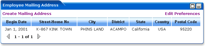 Depending on the value selected in the Maxrows field, the Employee Mailing Address Portlet, will only display the first few records (as per this setting), and the user can then navigate through rest of the records, using Previous and Next buttons, which are available, at the bottom left of the Employee Mailing Address Portlet.