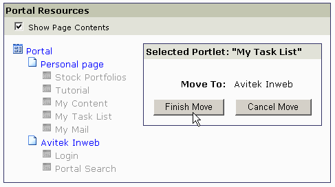 - In the Portal Resources pane, click on the portlet that you want to move. Click Move.