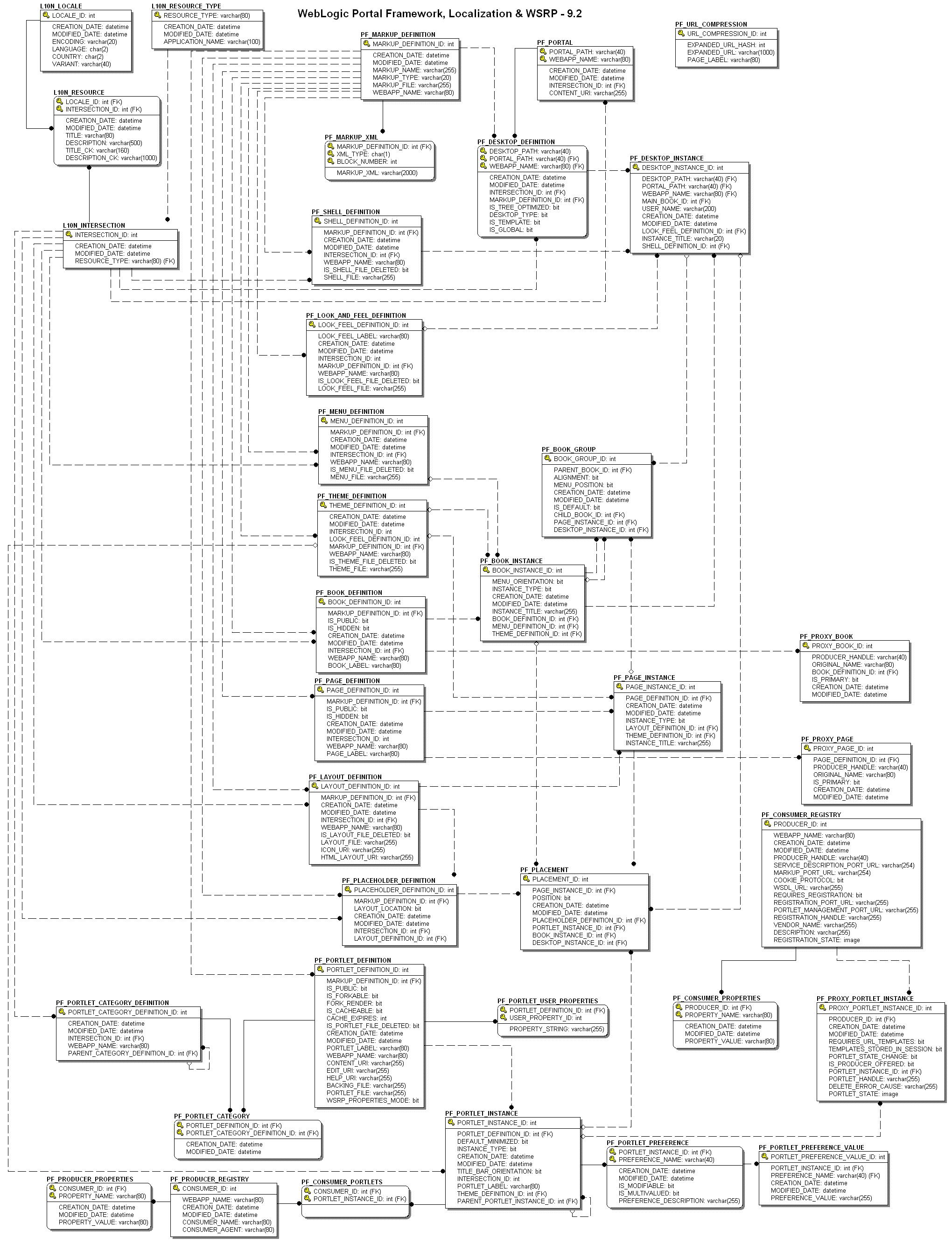 This chapter describes the database objects for each component of WebLogic Portal. The information in this section is collectively known as the data dictionary.