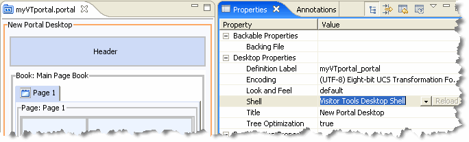 in the Servers view menu. .portal file in the Package Explorer and choose Run > Open Portal Administration Console to start the WebLogic Portal Administration Console. .portal created previously as the basis for the new desktop. When you use the portal that you created in Workshop for WebLogic as the basis for the new desktop, that desktop inherits the usage of the Visitor Tools Desktop shell. This provides access to Visitor Tools from the desktop.