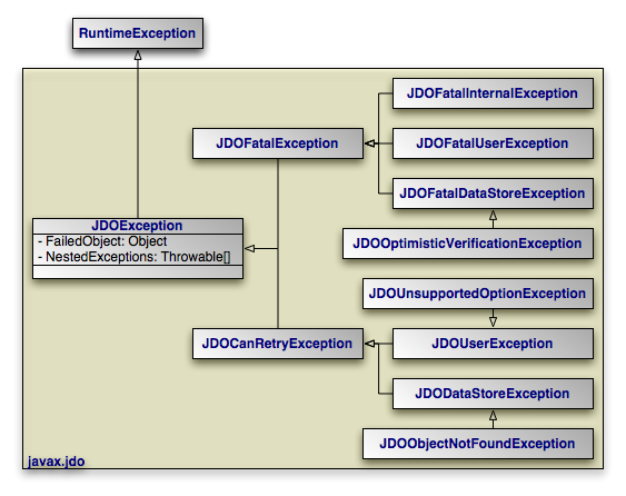 The diagram above depicts the JDO exception architecture. Runtime