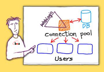 <% // We're using a connection from the bigtel pool conn = new weblogic.jdbc.pool.Driver().connect("jdbc:weblogic:pool:bigtel", null); new TableElement(new TableDataSet(conn, "customer").fetchRecords()).output(out); %>