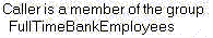 In this expression example, the first line is the role condition, the second line is the specific information you supply for the condition—in this case, a group called FullTimeBankEmployees.