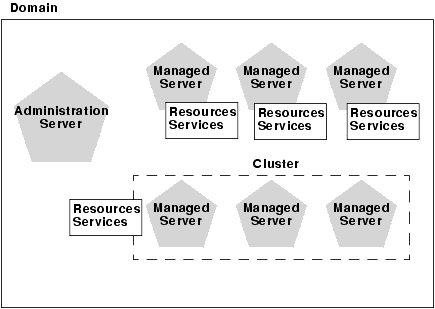 In addition to the Administration Server and Managed Servers, a domain also contains the resources and services required by Managed Servers and hosted applications deployed in the domain.